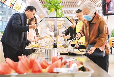 菜品家常、供给丰富,价格实惠、保证质量……2023年,老年助餐服务在全国加速发展,各地进行了积极探索。有的推出个性化订餐,组织上门送餐或启用流动餐车;有的推出小份菜、半份菜或无糖餐等模式;有的安装带有显示屏的备餐台,标明菜品的蛋白质、脂肪等成分配比,方便居民选择……不断完善的软硬件服务,帮助老年人吃得更安心舒心。