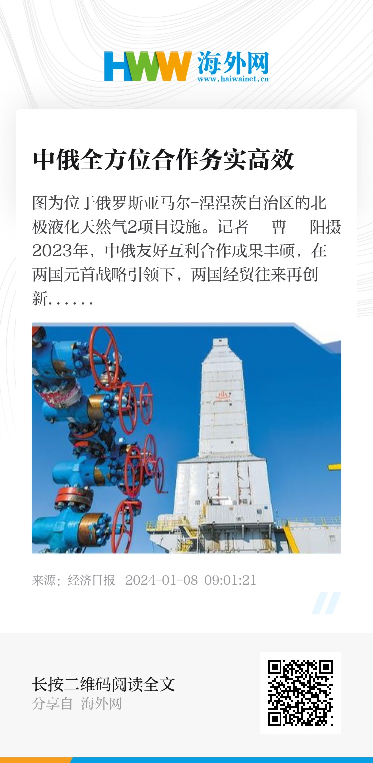 两国贸易不仅在量上取得长足进步,在质上更是成色十足。俄罗斯中国总商会发布的《中国企业在俄罗斯发展报告(2023)》指出,两国经贸合作经受住地缘政治等系列挑战,显示出强大韧性,实现了量质齐升,同时贸易结构加速优化,机电产品占出口比重从45.6%升至59.3%,中国品牌汽车、手机、家电、机械工程等在俄知名度和认可度持续提高。随着两国间投资和项目合作稳步推进,合作机制日益完善,未来将不断发掘新的经贸合作增长点,助力两国经贸合作高质量发展。基于近两年中俄经贸成果,有俄罗斯专家表示,两国贸易正在发生质的变化。