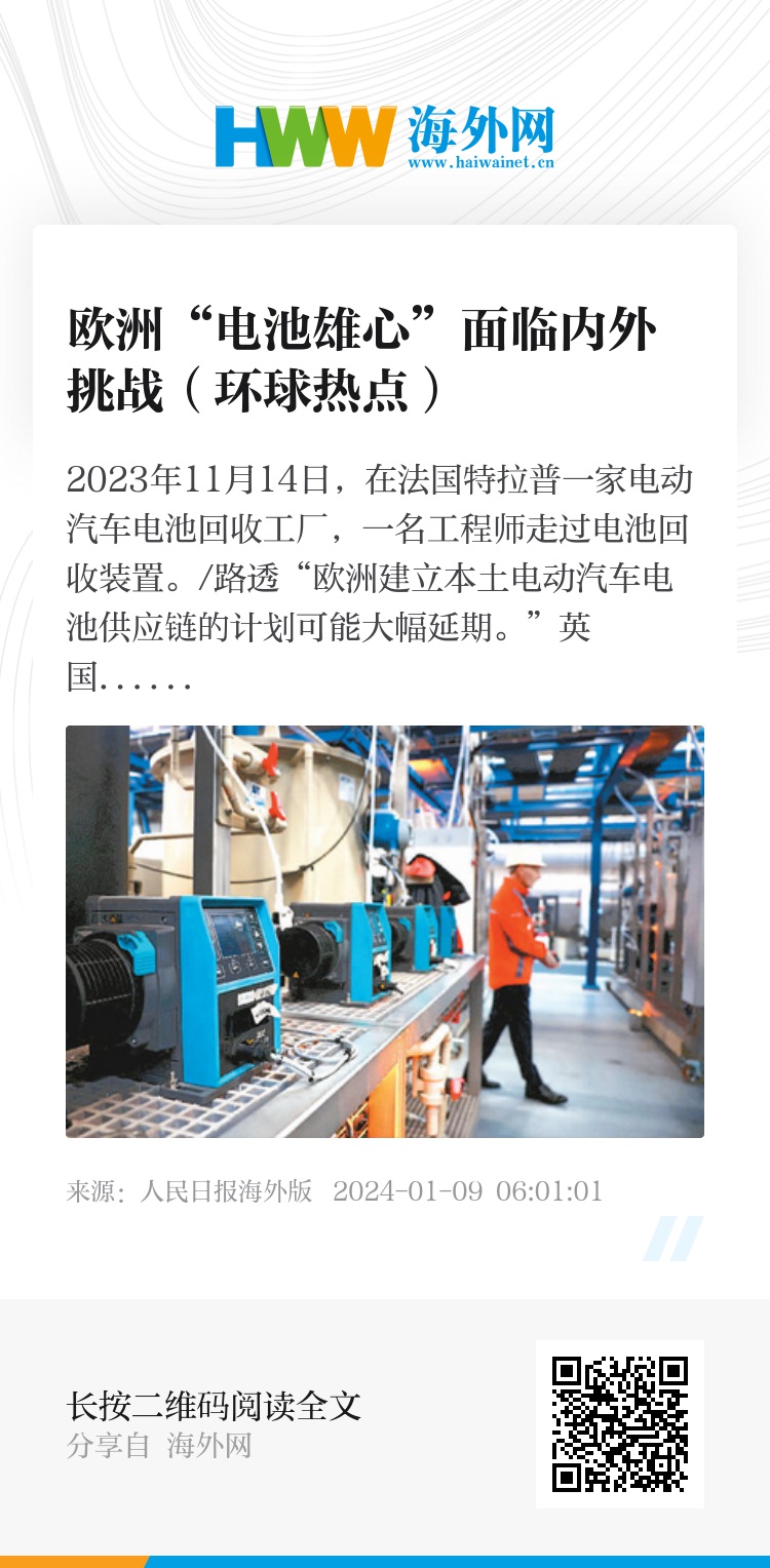 “在电池领域,美欧盟友关系或会变成‘零和博弈’。”姚旭说,在当前全球电池产业新格局下,欧洲电池产业扩大生产的资源本就有限,美国电池产业与政策的挤压将进一步影响欧洲电池产业的发展空间。