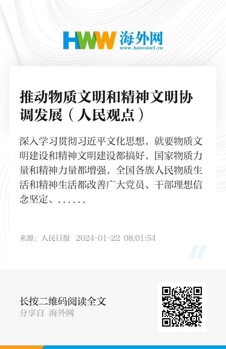 深入学习贯彻习近平文化思想,就要物质文明建设和精神文明建设都搞好,国家物质力量和精神力量都增强,全国各族人民物质生活和精神生活都改善