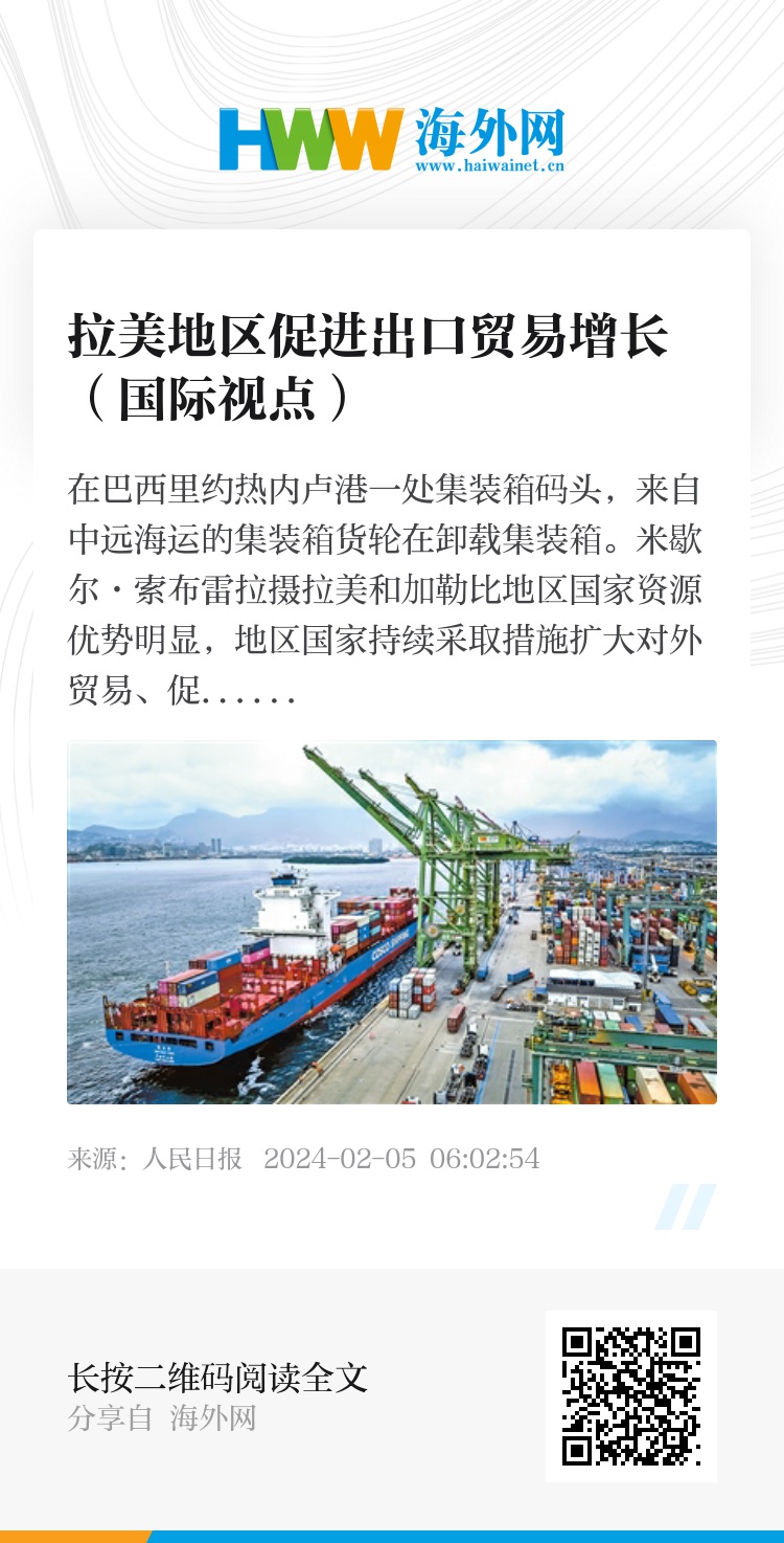巴西中国问题研究中心主任罗尼·林斯表示,中拉贸易互补性强、潜力大,中国庞大的市场为拉美地区国家的贸易出口提供了广阔市场,“中国是全球经济增长的重要驱动力,中国在国际贸易和全球投资领域扮演着重要角色”。
