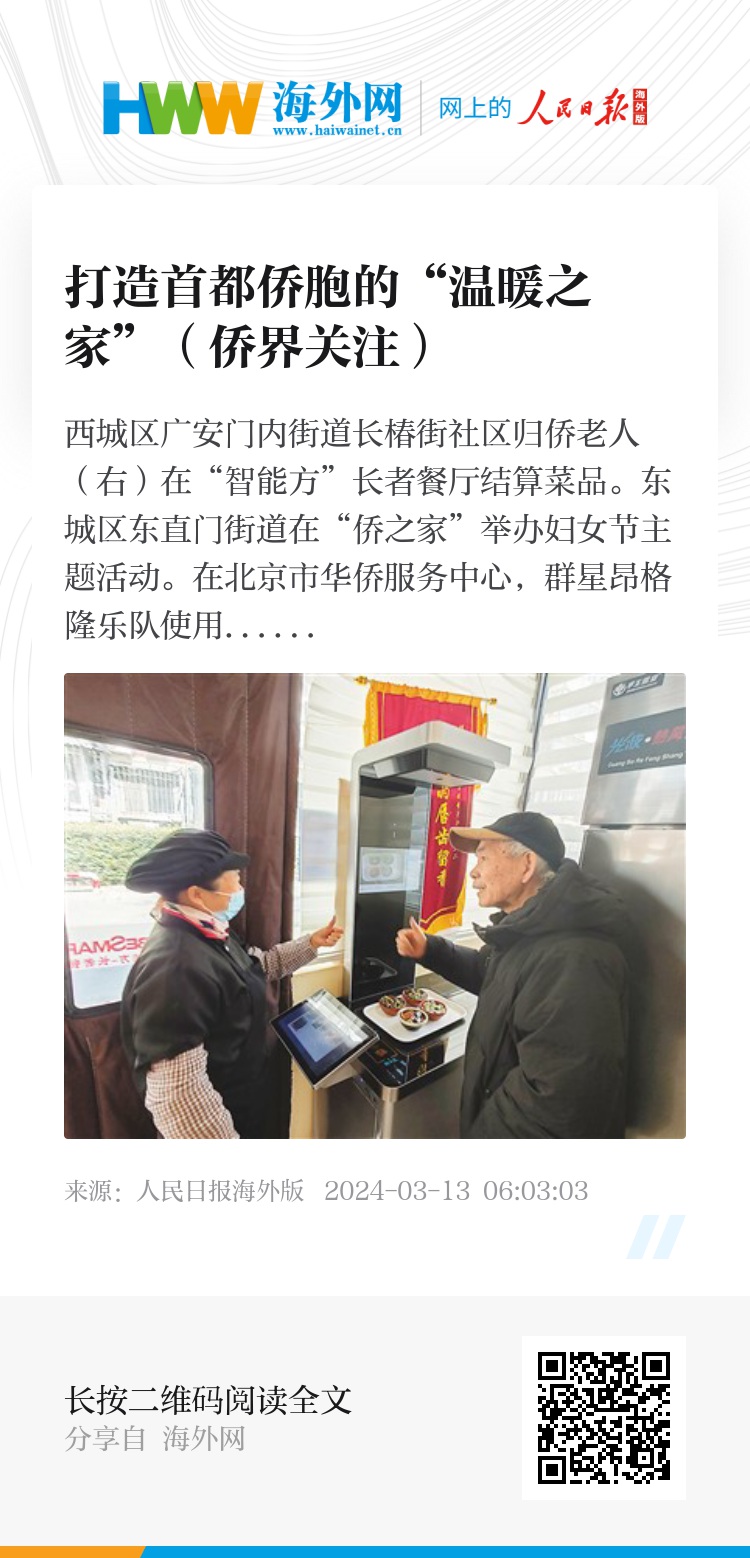 广安门内街道工作委员会副书记白杨介绍,街道通过整合“侨之家”平台,满足了辖区侨界群众各类基本需求,很多侨胞积极参与社区事务,归属感大为增强,“‘侨之家’已经成为归侨、侨眷、海外侨胞可信赖的团结之家、奋斗之家、温暖之家”。(彭训文 张 淇 冯煜雯文/图)