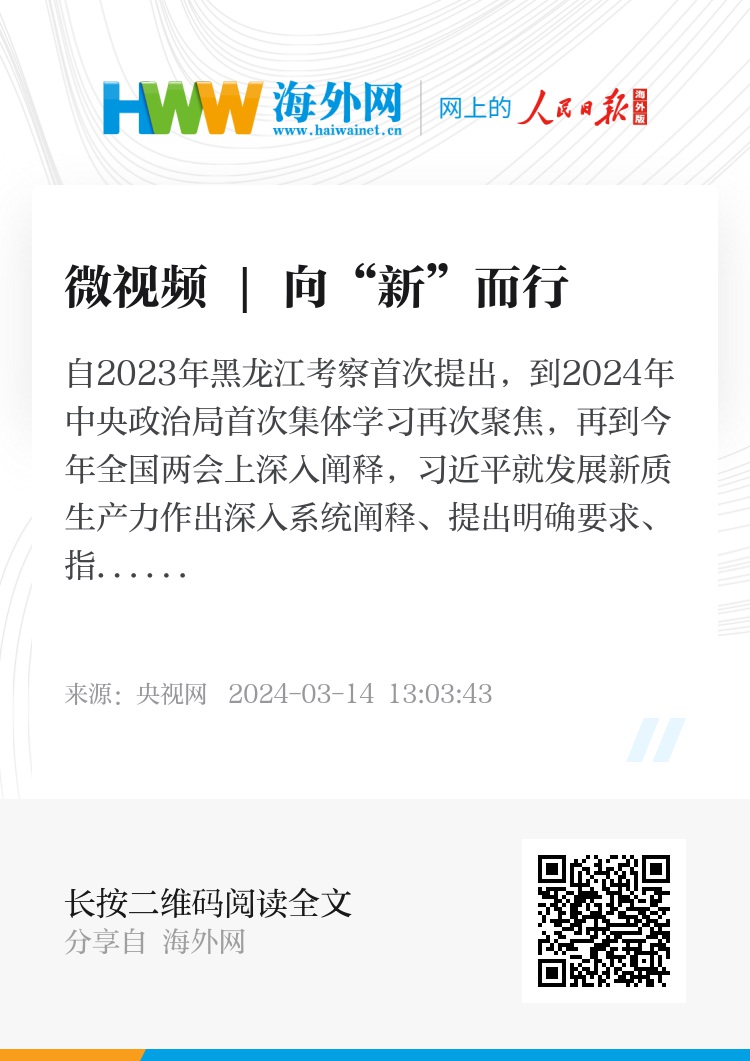 2024全国两会闭幕之际,中央广播电视总台央视网推出微视频《向“新”而行》,看新质生产力正激扬中国经济新活力。