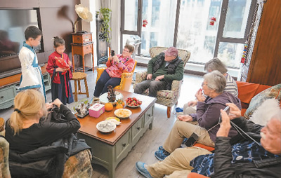 “翠德丹”号邮轮停靠大连,邮轮上的外国游客到访大连市民家中。新华社记者 潘昱龙摄