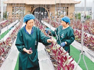 工人在江苏省泰州市姜堰区溱湖智慧农业园数字化工厂内修剪植物。汤德宏摄(人民图片)