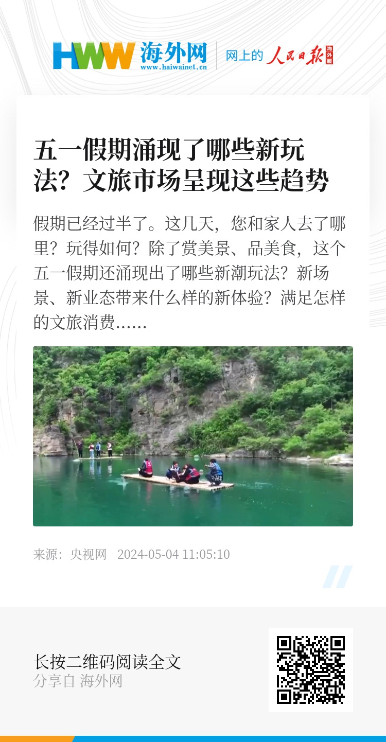 除了赏美景、品美食,这个五一假期还涌现出了哪些新潮玩法?新场景、新业态带来什么样的新体验?满足怎样的文旅消费新需求?“五一”假期文旅市场又呈现出怎样的新特点、折射出怎样的新趋势呢?