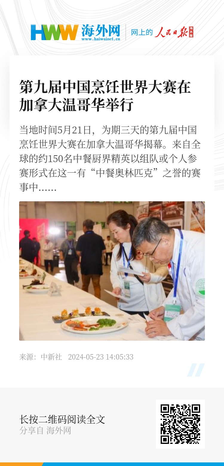 当地时间5月21日,为期三天的第九届中国烹饪世界大赛在加拿大温哥华揭幕。来自全球的约150名中餐厨界精英以组队或个人参赛形式在这一有“中餐奥林匹克”之誉的赛事中角逐“舌尖上的桂冠”。