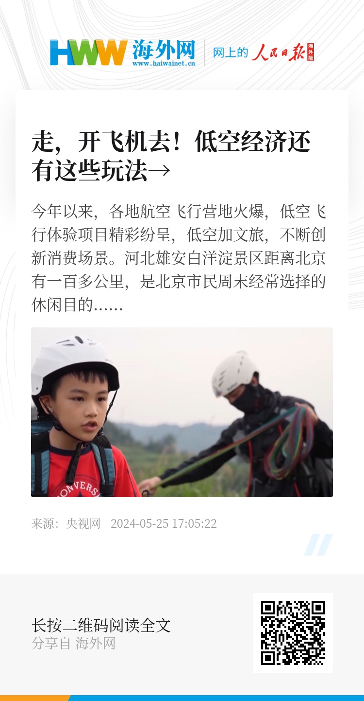 今年以来,各地航空飞行营地火爆,低空飞行体验项目精彩纷呈,低空加文旅,不断创新消费场景。