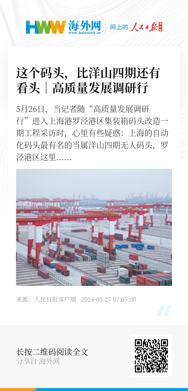 5月26日,当记者随“高质量发展调研行”进入上海港罗泾港区集装箱码头改造一期工程采访时,心里有些疑惑:上海的自动化码头最有名的当属洋山四期无人码头,罗泾港区这里有什么过人之处?