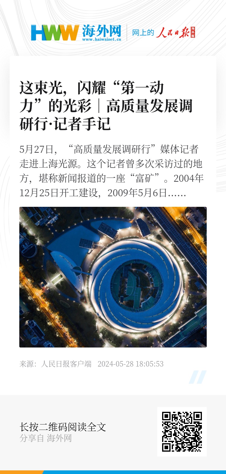 创新是引领发展的第一动力,重大科技基础设施则是提升创新策源能力的利器。上海光源的这束光,不仅是“神奇的光”,更是“创新的光”“自立自强的光”,闪耀着“第一动力”的光彩,照亮科技前行道路。