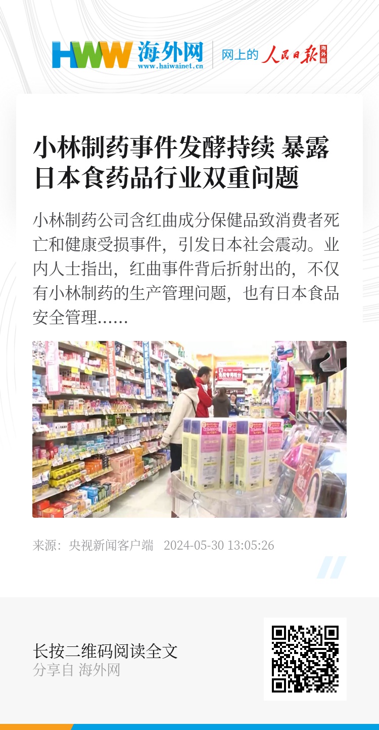 小林制药公司含红曲成分保健品致消费者死亡和健康受损事件,引发日本社会震动。业内人士指出,红曲事件背后折射出的,不仅有小林制药的生产管理问题,也有日本食品安全管理制度的缺陷。