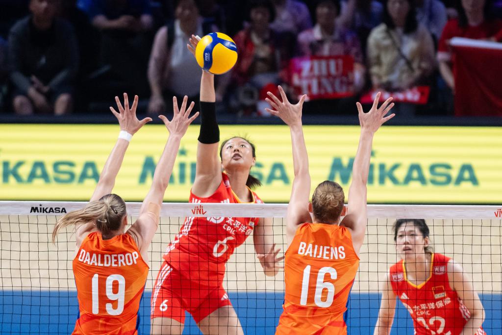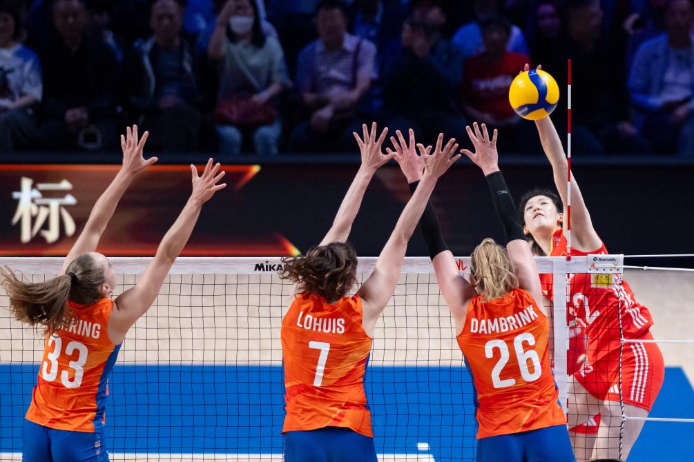 首局比赛中国队失误较多,荷兰队取得13:6的领先。中国队请求暂停后迅速调整状态,一度将分差缩小至3分,但最终还是以21:25告负。第二局,中国队在开局落后的情况下依靠多点进攻在后半段反超比分,以25:23扳平大比分。士气大振的中国女排在接下来的比赛中掌握了主动,进攻更加积极,以25:23、25:21连下两局赢得胜利。