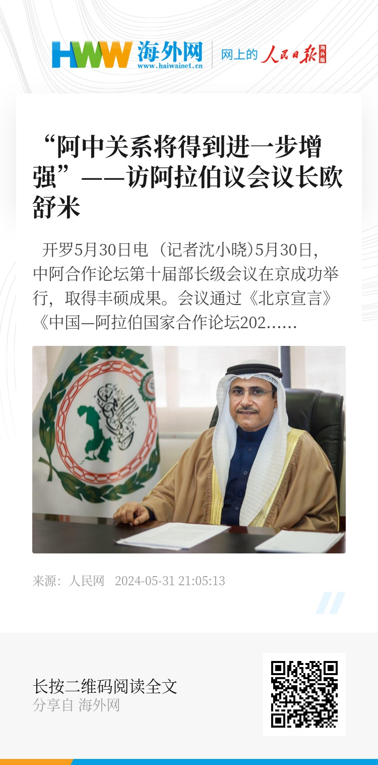 当前阿中务实合作正得到进一步增强。欧舒米认为,阿拉伯国家与中国将迎来更广阔的合作空间,期待在能源、科技、人工智能等领域开展更广泛的合作,“阿中关系将得到进一步增强”。