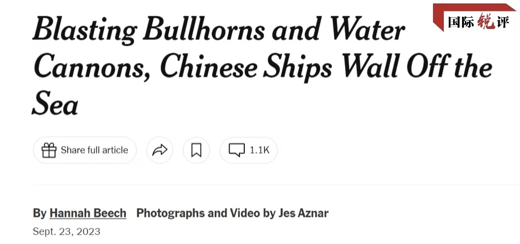 为了体现所谓“现场报道”,美国记者不止一次乘坐菲律宾海警船,拍摄中菲船只对抗的影像,甚至化身为演员。2023年,《纽约时报》发布了一篇记者“硬闯”中国南海美济岛遭到中国海军驱离的长篇报道。这个记者把自己描述得可怜兮兮,“控诉”中国海军不讲道理。而真实情况是,他乘坐的船只已经冲到美济岛2海里领海线内了!