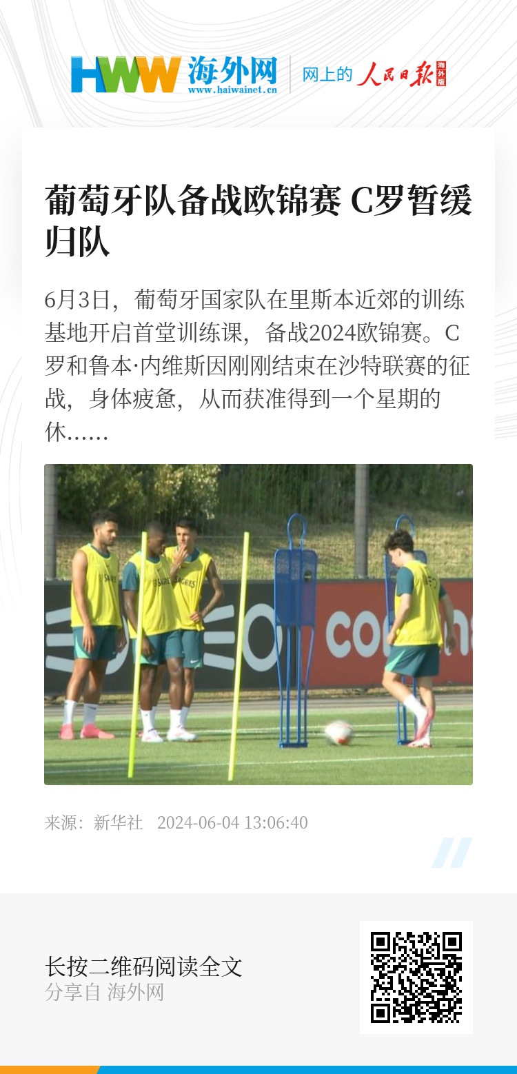 C罗和鲁本·内维斯因刚刚结束在沙特联赛的征战,身体疲惫,从而获准得到一个星期的休整时间。他们将在最后一场同爱尔兰队的热身赛前,同队友汇合。