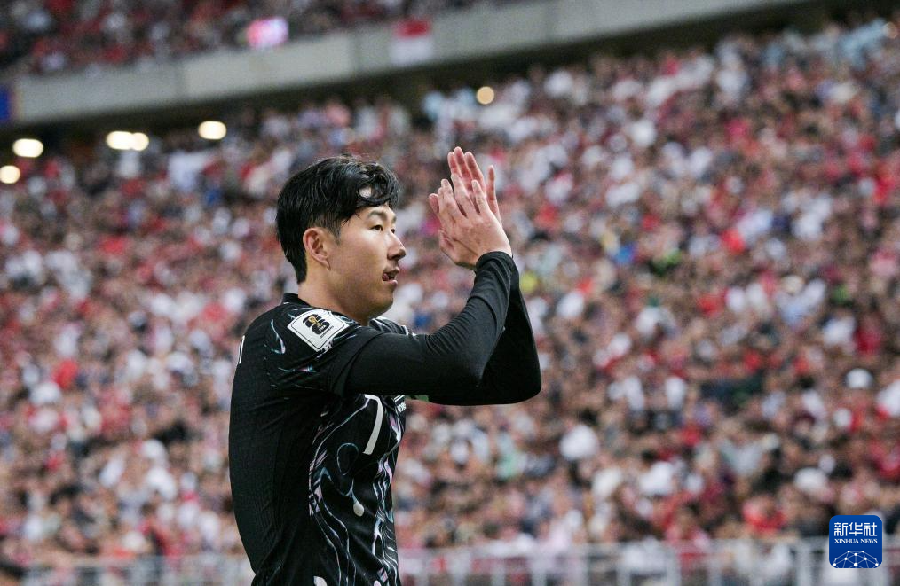 6月6日,韩国队球员孙兴慜在比赛中向球迷致意。新华社发 (邓智炜摄)