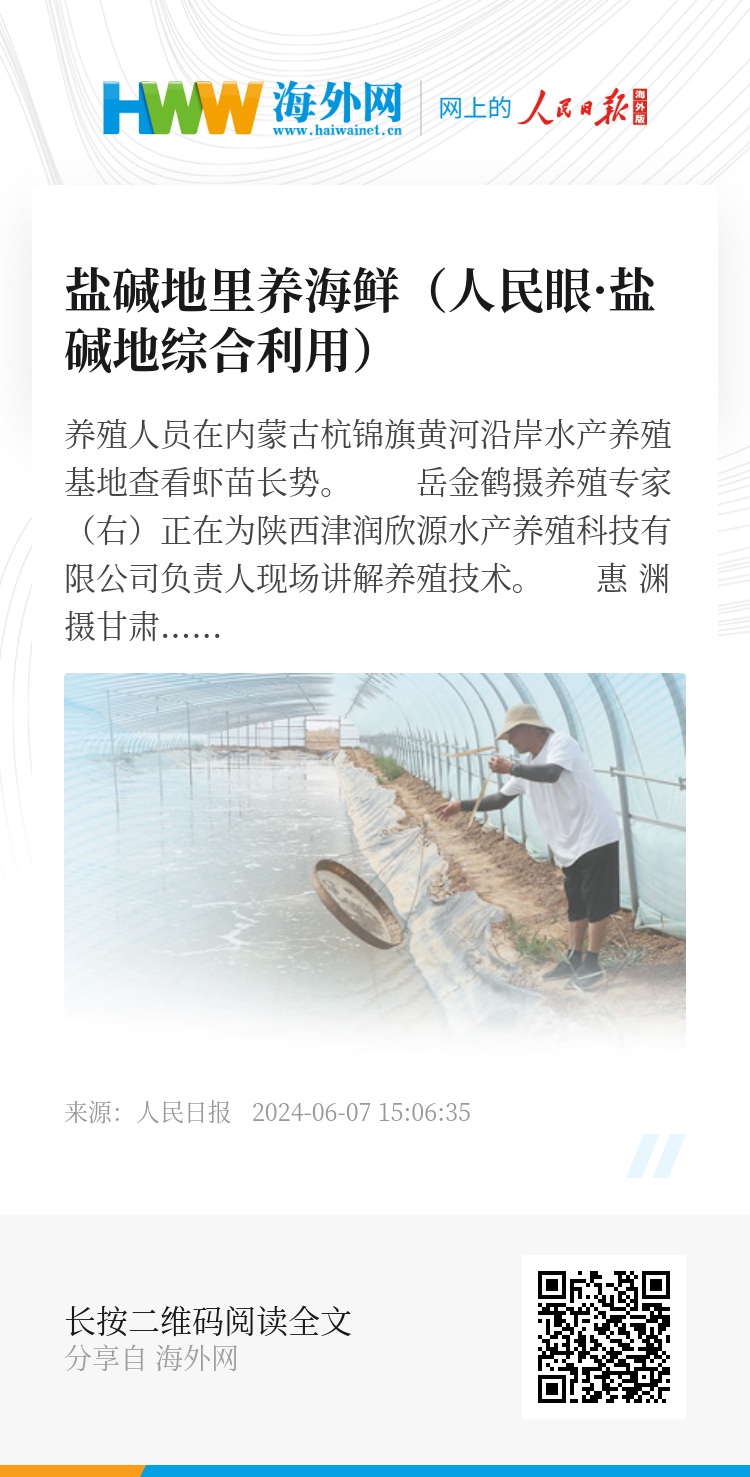 近年来,我国部分地区探索利用盐碱地发展水产养殖,其中不乏南美白对虾等海鲜。这些地方发展水产养殖如何突破自然条件限制?盐碱地渔业开发利用取得了哪些成效?养出的海鲜市场销路怎样?记者分赴甘肃、陕西、内蒙古等省份探访。