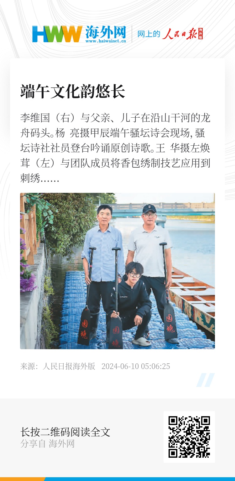 在2024年端午节到来之际,本报特推出专版,约请相关节俗的代表性传承人(团体)、海外华文作家及民俗专家等,共话端午节俗与端午文化的创造性转化、创新性发展,以及向海外传播的故事。