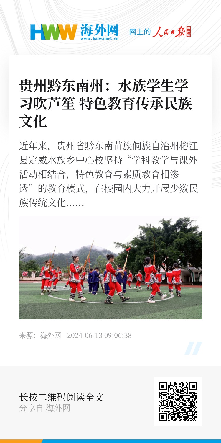 32757347,.贵州黔东南州:水族学生学习吹芦笙 特色教育传承民族文化,.2024-06-13 09:32:38,.204372,.刘素素、夏丽娟