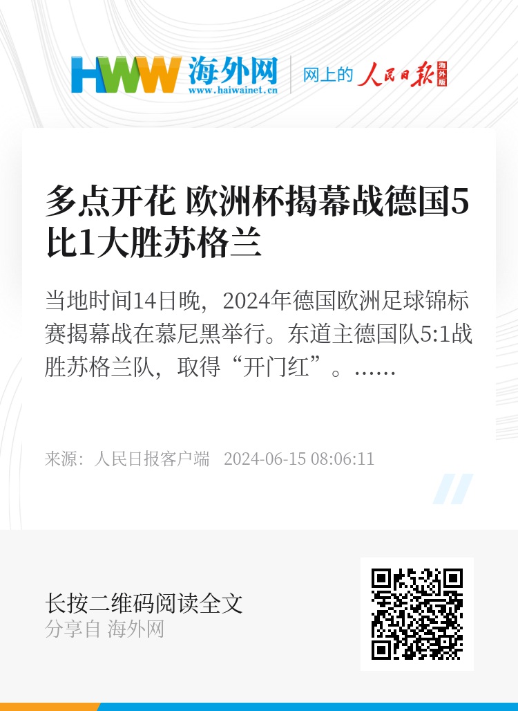 当地时间14日晚,2024年德国欧洲足球锦标赛揭幕战在慕尼黑举行。东道主德国队5:1战胜苏格兰队,取得“开门红”。