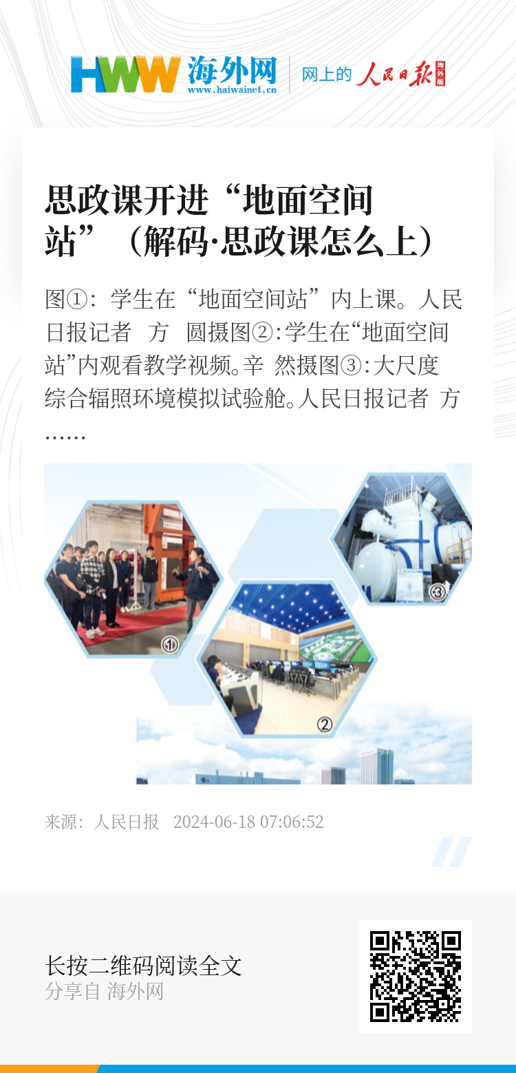 从试验舱到粒子加速器设备区,再到空间磁环境科学实验楼设备区……“想在这里讲好一堂思政课,首先要弄清楚‘地面空间站’的基本情况,设计课堂路线,再结合思政主题,找到合适的切入点。”闫金红说。