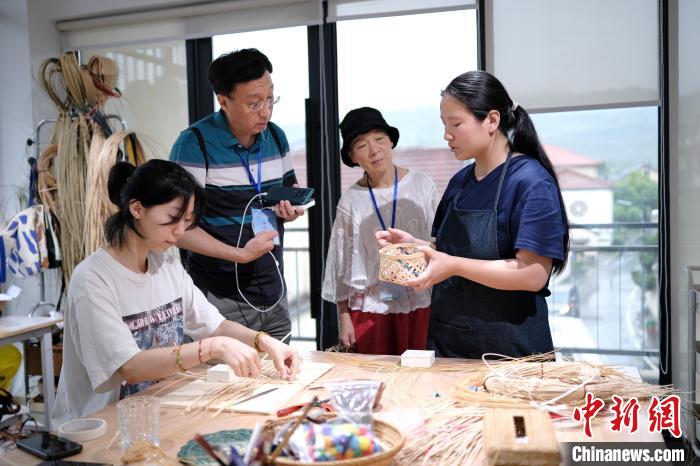 中新网杭州6月20日电(曹丹)“我在社交平台上看到这里有竹编体验课程,已经在村子里待了3天了。”19日,在浙江省杭州市余杭区黄湖镇青山村的艺启共富工坊内,“十日学徒”李梦正在专注地用竹条编织篮篓,在手工艺体验中放松身心。