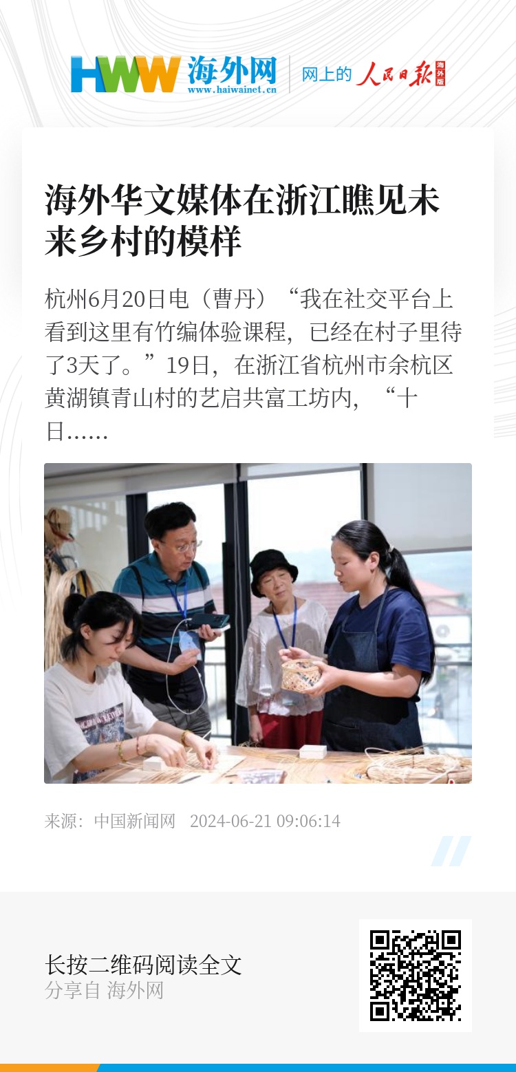 “绿水青山、宜业宜居是不少人向往的未来生活。浙江在保护生态环境、保护传统产业下,盘活乡村闲置资源、赋能乡村产业发展,让各个乡村都独具品牌和特色,各美其美。”英国《头条辰报》社长李俊辰希望,借助海外华文媒体的平台,让更多人来浙江乡村放缓脚步,感受传统乡村的独特魅力。