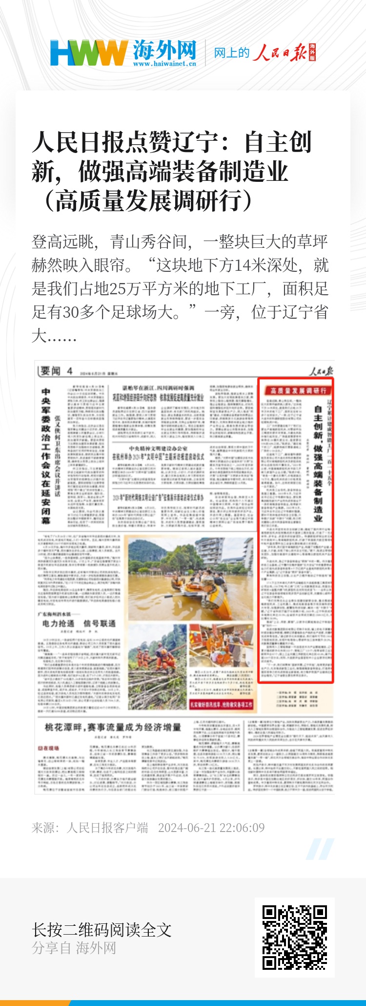 “下一步,我们将聚焦‘国家所需,辽宁所能’,培育更多新质生产力,扎实推进新型工业化,做强高端装备制造业,打造具有国际竞争力的先进制造业新高地,有力维护我国产业链供应链安全稳定。”辽宁省委主要负责同志表示。(人民日报郝迎灿 曹树林 胡婧怡)