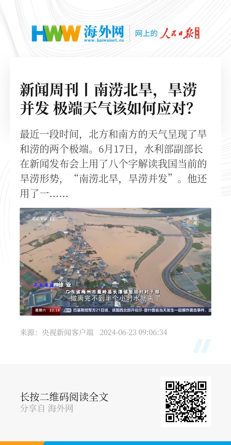 在气候变暖的大背景下,越来越频发的极端天气,已经成为全球性的挑战。我们当然要搞清楚极端天气的成因并找到解决之道,而眼下,如何做好预警和防范,更是当务之急。根据水利部的预测,今年6到8月汛期水旱灾害的形势不容乐观,暴雨洪水等极端事件可能多发、频发、重发,防御的形势依然严峻。现在才刚刚六月底,更大的挑战还在后边,希望有很多工作已经在未雨绸缪地开展。