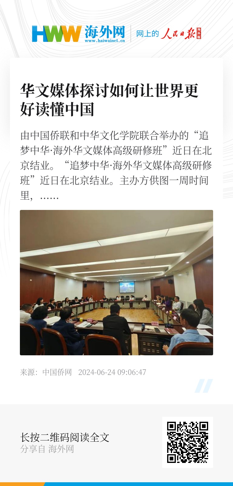 由中国侨联和中华文化学院联合举办的“追梦中华·海外华文媒体高级研修班”近日在北京结业。