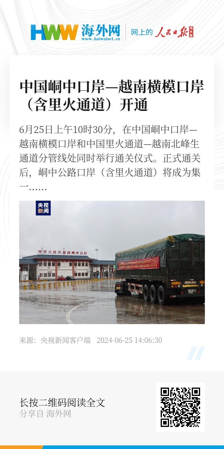峒中公路口岸(含里火通道)是广西第一个、全国首个以一线卡口一站式模式通过一类口岸验收的口岸。相比于传统的陆路边境口岸一线卡口,普遍采用海关边检分开设置卡口建筑的分段式模式,该模式存在海关边检两个卡口建筑、出入境车辆需要分别停车两次进行数据采集和联检部门的验放处理。(总台记者 廖汨 杨萌 刘畅)