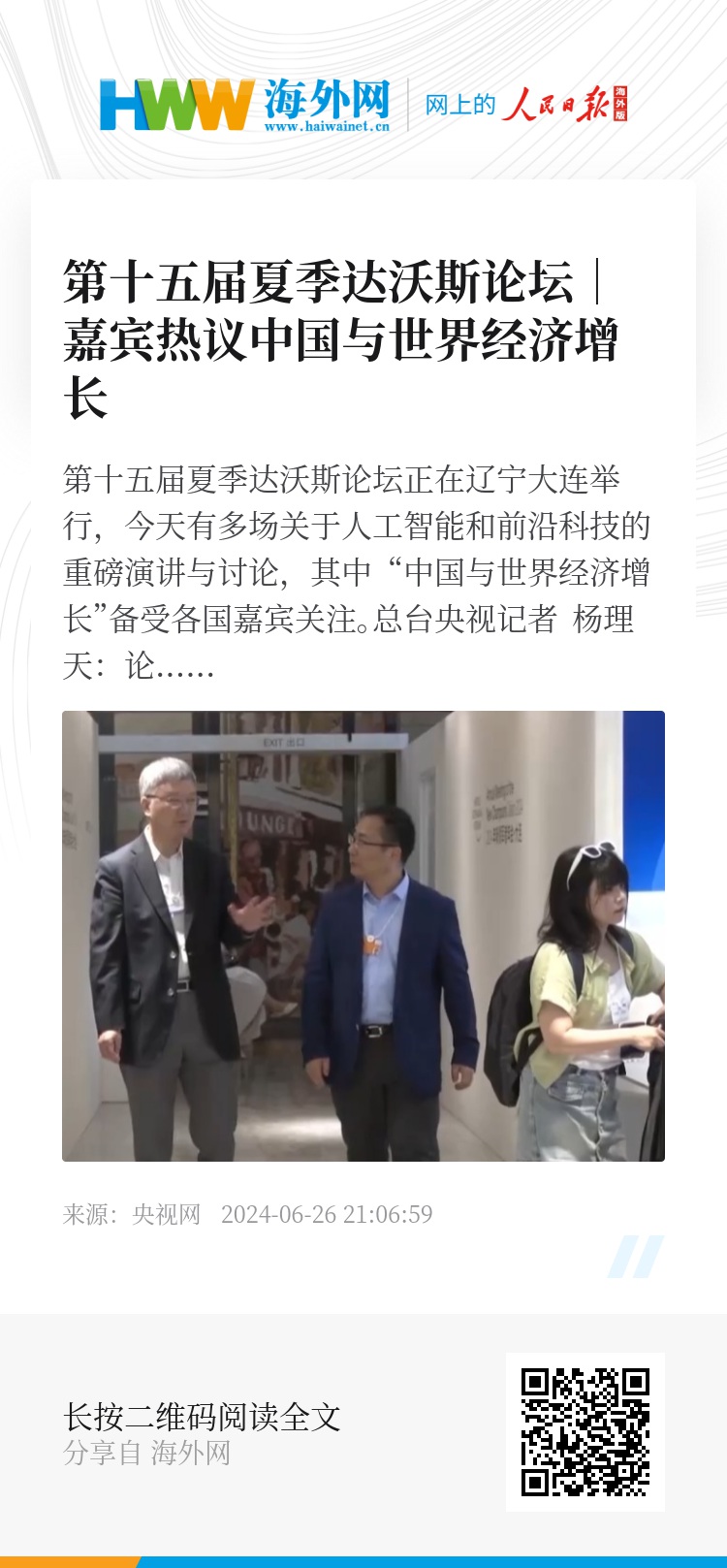 第十五届夏季达沃斯论坛正在辽宁大连举行,今天有多场关于人工智能和前沿科技的重磅演讲与讨论,其中“中国与世界经济增长”备受各国嘉宾关注。