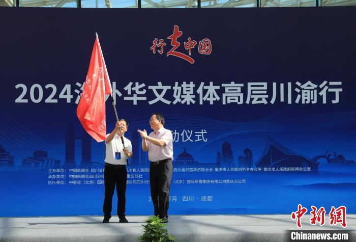 7月1日,四川成都,“行走中国·2024海外华文媒体高层川渝行”授旗仪式。记者 王磊 摄
