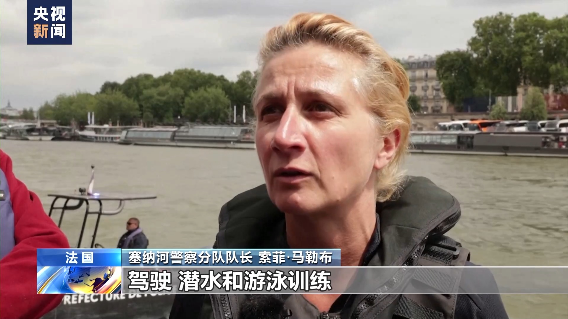 塞纳河警察分队队长 索菲·马勒布:我们每天早晨都坚持驾驶、潜水和游泳训练,以便在塞纳河上举行的开幕式和水上赛事的安保工作中保持最佳状态。我们将确保(奥运会)安全。