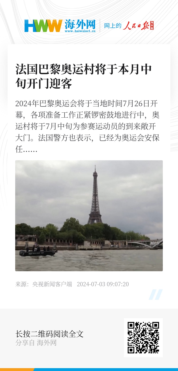 2024年巴黎奥运会将于当地时间7月26日开幕,各项准备工作正紧锣密鼓地进行中,奥运村将于7月中旬为参赛运动员的到来敞开大门。法国警方也表示,已经为奥运会安保任务做好准备。