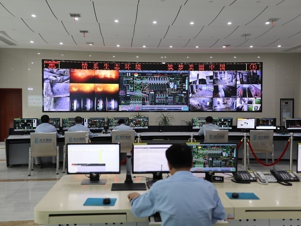 光大环保能源(吉安)有限公司中控室内,工作人员实时监测炉膛温度和环保排放指标。