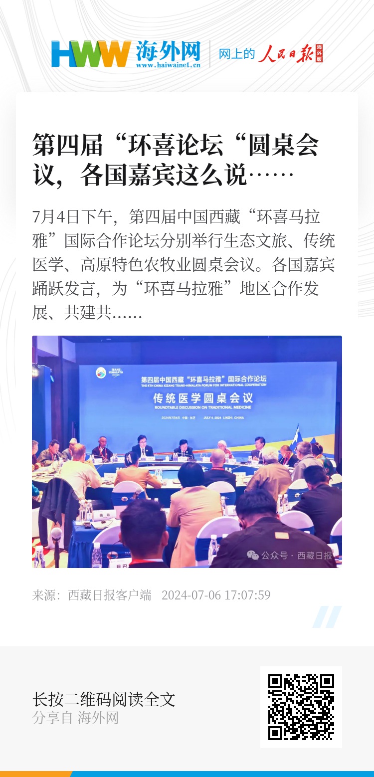 7月4日下午,第四届中国西藏“环喜马拉雅”国际合作论坛分别举行生态文旅、传统医学、高原特色农牧业圆桌会议。各国嘉宾踊跃发言,为“环喜马拉雅”地区合作发展、共建共享建言献策。