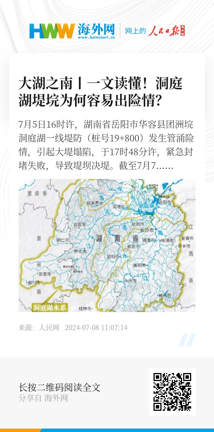 此次溃堤的团洲垸属于洞庭湖区24个蓄洪垸之一,蓄洪垸的定义是指设置在河流中下游用于蓄滞洪水的低洼地带或堤垸,为蓄滞洪区。