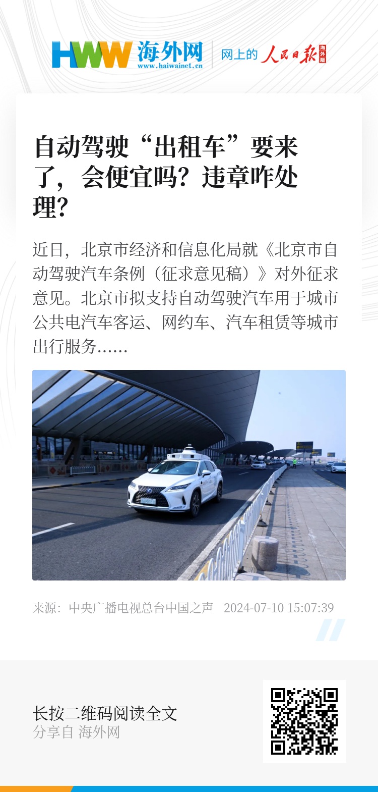 近日,北京市经济和信息化局就《北京市自动驾驶汽车条例(征求意见稿)》对外征求意见。北京市拟支持自动驾驶汽车用于城市公共电汽车客运、网约车、汽车租赁等城市出行服务。