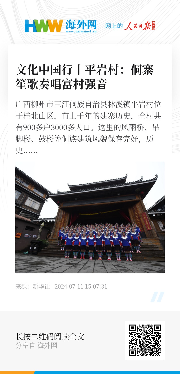 近年来,平岩村依托丰富的旅游资源、历史文化遗存和自然资源,不断升级改造,通过打造百家宴、侗族大歌、侗戏、侗茶等一批侗族文化非遗旅游品牌,持续推动文旅产业高质量发展。今年2月份,以平岩村为核心区域的程阳八寨景区被确定为国家5A级旅游景区。目前,景区共有民宿、农家乐、特产店等旅游经营主体300多家,带动3000多名村民创业就业。2023年,景区接待游客93.2万人次,旅游收入达1亿元。