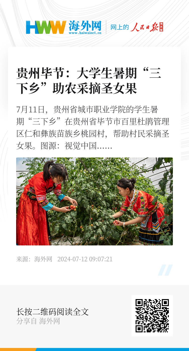 贵州毕节:大学生暑期“三下乡”助农采摘圣女果