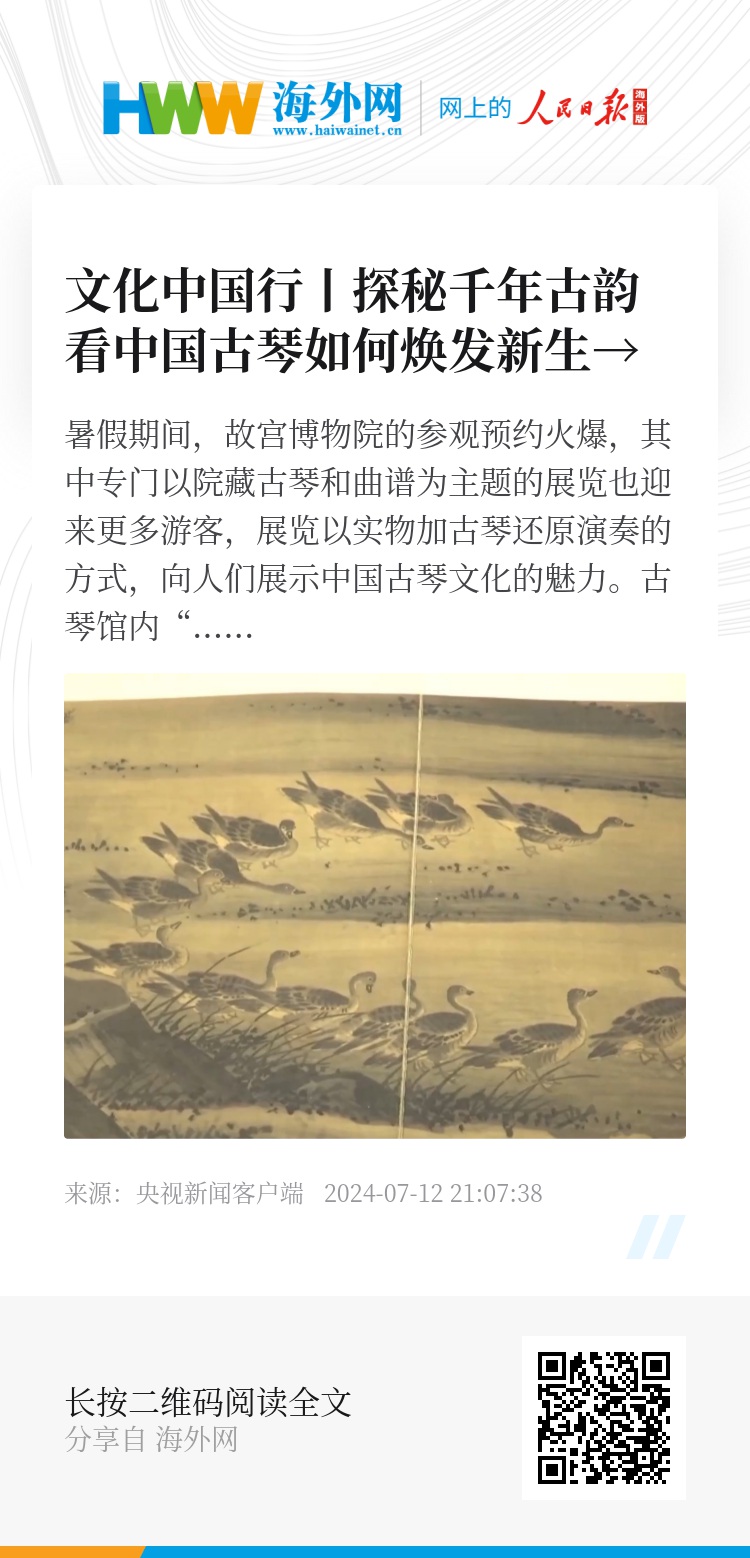 暑假期间,故宫博物院的参观预约火爆,其中专门以院藏古琴和曲谱为主题的展览也迎来更多游客,展览以实物加古琴还原演奏的方式,向人们展示中国古琴文化的魅力。