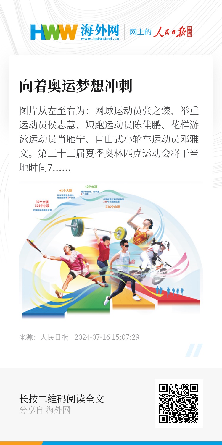 拼搏是竞技场上最动人的旋律,期待中国体育代表团运动员在巴黎奥运会赛场创造佳绩,成就梦想!