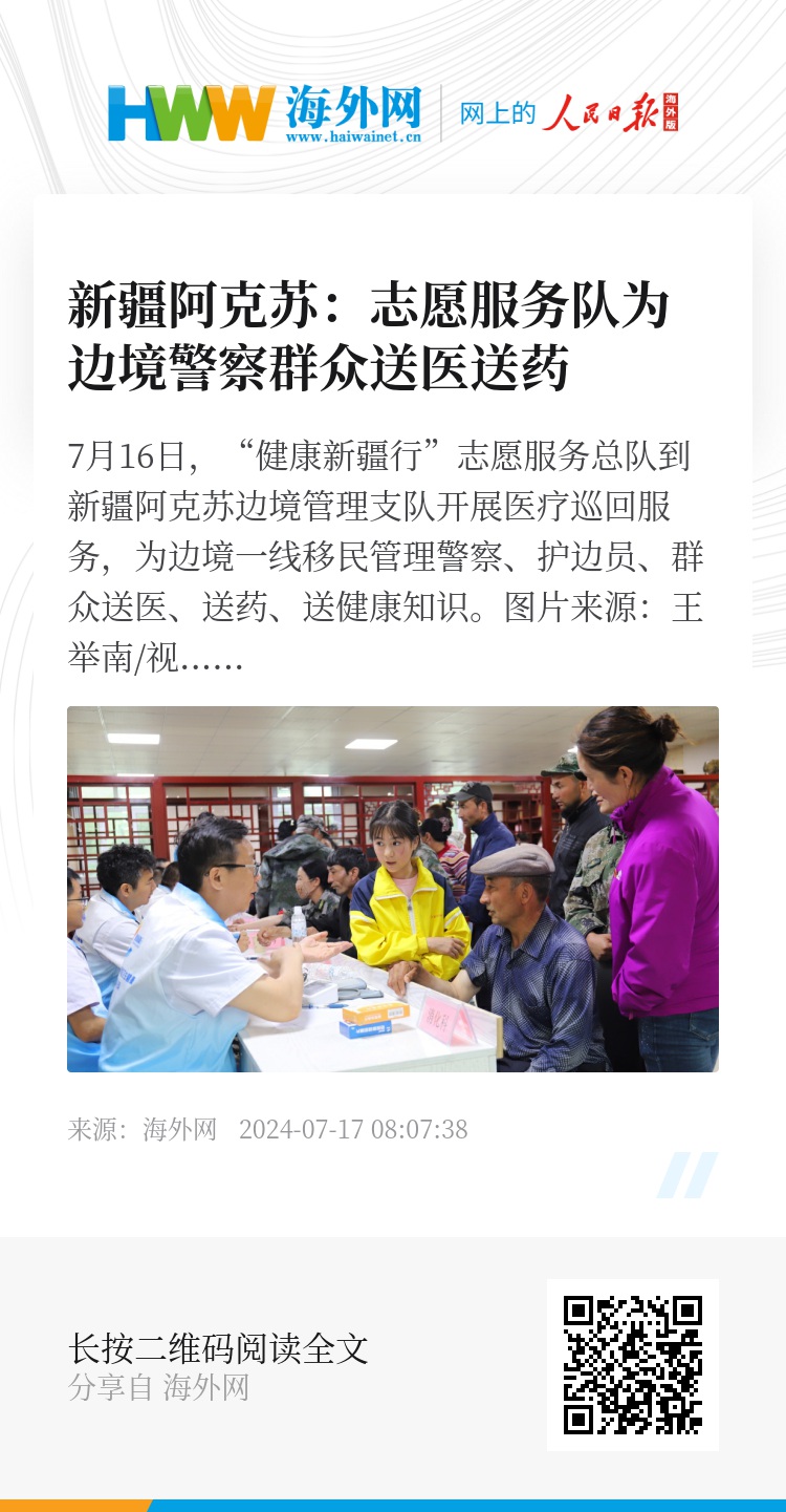 32770295,.新疆阿克苏:志愿服务队为边境警察群众送医送药,.2024-07-17 08:49:38,.204372,.刘素素、张荣耀
