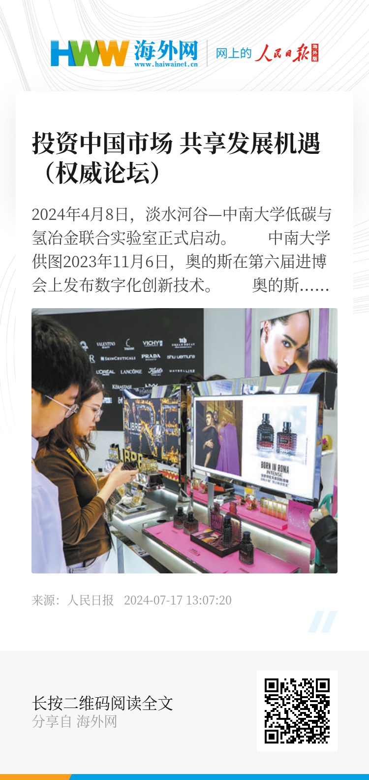 博万尚:欧莱雅数十年来一直是法中友好关系的见证者、推动者和受益者。今年恰逢法中建交60周年,我们非常荣幸并欣喜地看到,美妆行业被两国列为战略合作重点领域。面对中国独特的市场发展速度和规模,我们将聚焦于发挥自身优势战略、精准布局,依托苏州智能运营中心升级供应能力,加大在产品研发、运营、数字化、可持续等多领域联动。同时,我们还将继续深化在华布局,与中国品牌加强合作,推动中国文化在海内外的共享与交流。欧莱雅将继续扩大在华投资,因为我们相信,投资中国就是投资增长、创新和更加包容的未来。