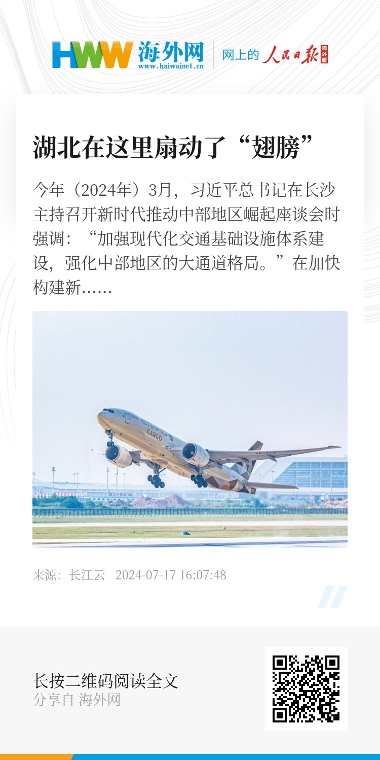 穿云端,达九州,链全球。中国中部的“空中出海口”在湖北加速打开,新时代“九州通衢”成为中部地区崛起正在张开的“翅膀”!