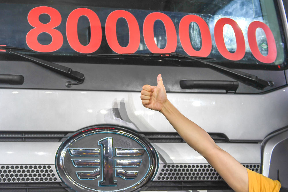 2021年7月13日,第800万辆解放牌卡车在吉林长春下线。