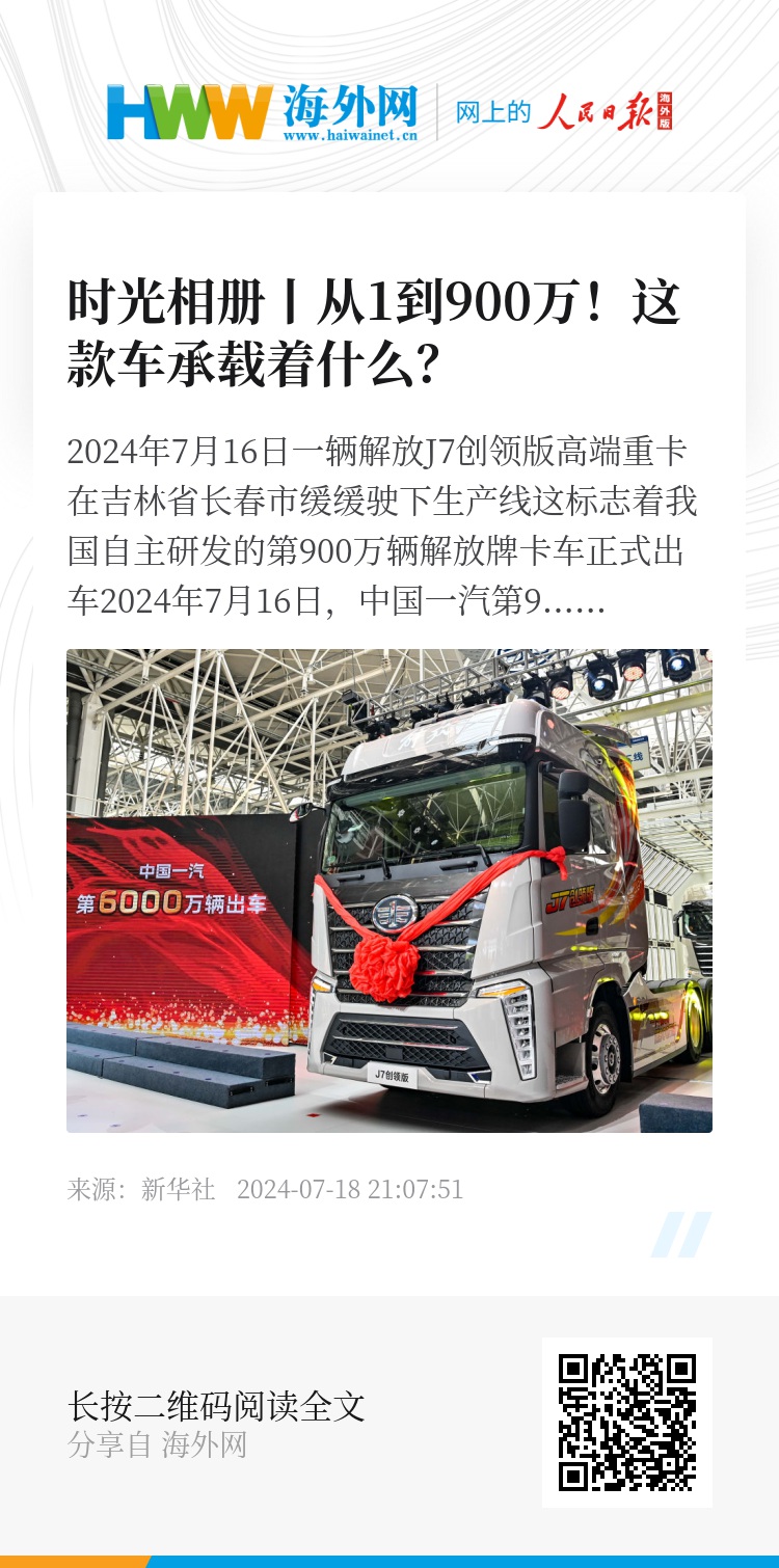 2024年7月16日,中国一汽第6000万辆汽车暨第900万辆解放牌卡车驶下生产线。
