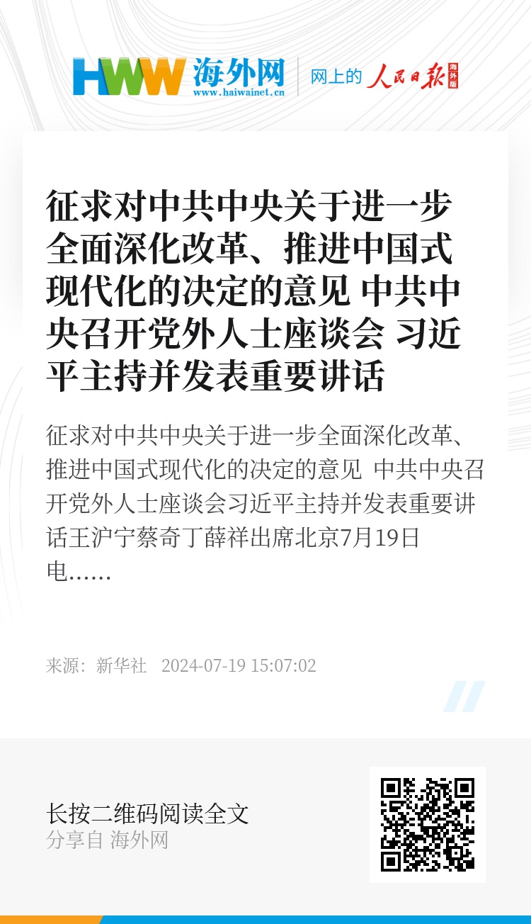 征求对中共中央关于进一步全面深化改革、推进中国式现代化的决定的意见 中共中央召开党外人士座谈会