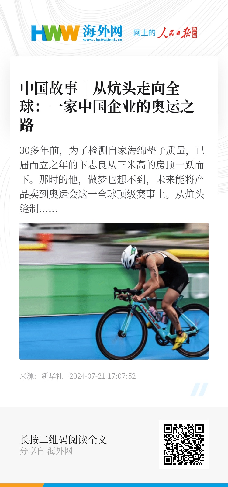 30多年前,为了检测自家海绵垫子质量,已届而立之年的卞志良从三米高的房顶一跃而下。那时的他,做梦也想不到,未来能将产品卖到奥运会这一全球顶级赛事上。